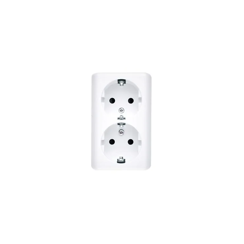 Gniazdo podwójne Schuko natynkowe z przesłonami torów prądowych wersja skandynawska 16A, 250V, szybkozłącza; biały