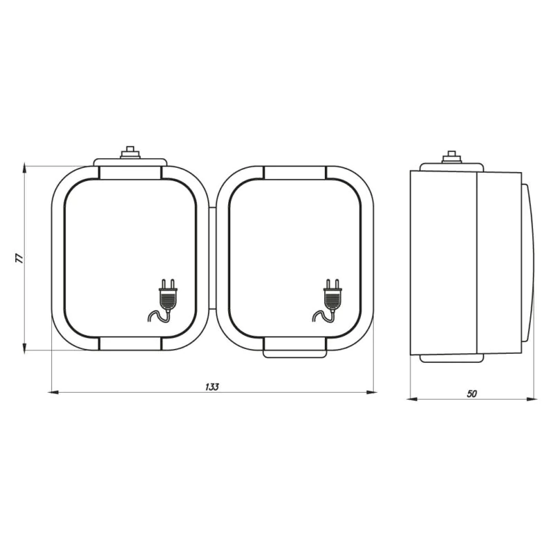 Gniazdo bryzgoszczelne podwójne z klapką + włącznik pojedynczy