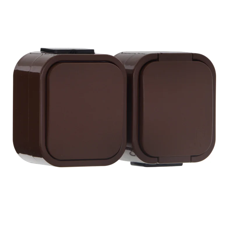 Brązowe gniazdo natynkowe z włącznikiem światła w poziomie IP54 B2 GWN-B2 ABEX