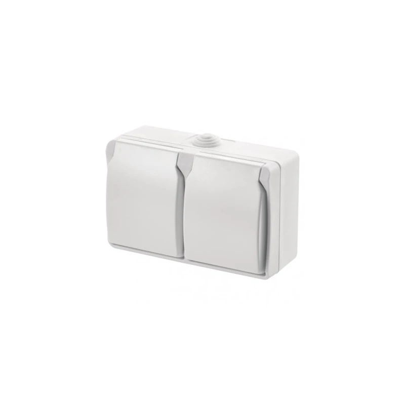 Gniazdo podwójne z klapką A1397.3 marki EMOS przeznaczone do montażu natynkowego. Wyposażone zostało w uziemieniem oraz klapkę zabezpieczającą przed kurzem oraz zalaniem wodą. Świetnie nada się do piwnicy lub garażu. Obudowa gniazda natynkowego jest w kolorze białym.