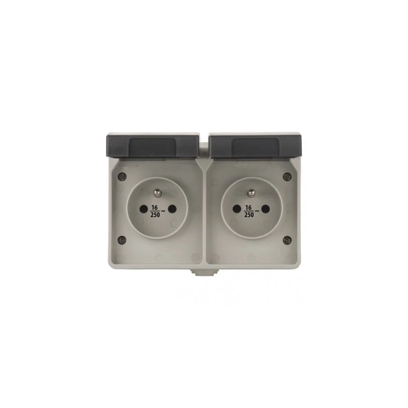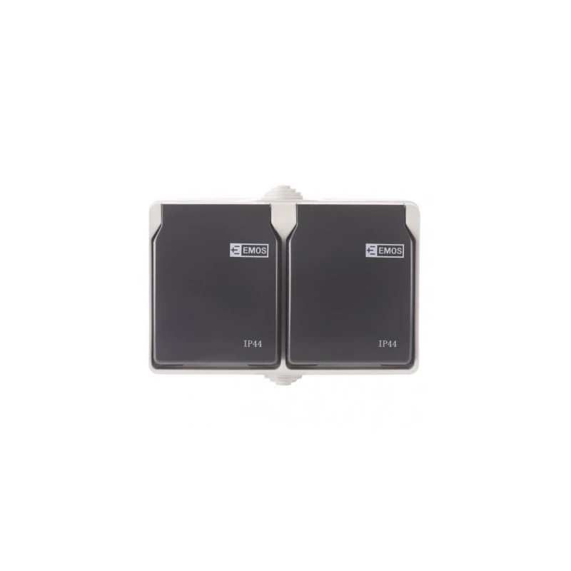 Gniazdo podwójne z klapką A1397.1 marki EMOS przeznaczone do montażu natynkowego. Wyposażone zostało w uziemieniem oraz klapkę zabezpieczającą przed kurzem oraz zalaniem wodą. Świetnie nada się do piwnicy lub garażu. Obudowa gniazda natynkowego jest w kolorze szaro-czarnym.
