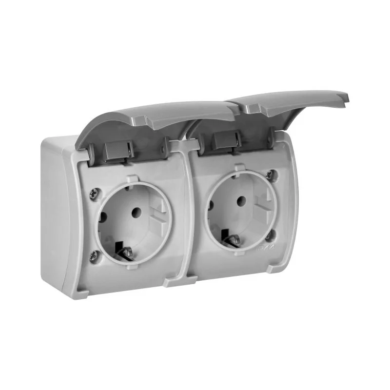 Podwójne gniazdo AQUATIC typu F wersja SCHUKO, przeznaczone do montażu natynkowego w szaro-grafitowym kolorze. Produkt marki ORNO, posiada praktyczne klapki, które chronią wnętrze gniazd przez bezpośrednim dostępem pyłów i wody, dzięki czemu gniazdo może być również montowane w pomieszczeniach o podwyższonej wilgotności, takich jak kuchnia czy łazienka. Produkt wykonany jest z wysokogatunkowego tworzywa sztucznego i występuje w 3 kolorach. Gniazdo posiada klasę szczelności IP44, więc może być stosowany zarówno wewnątrz, jak i na zewnątrz. Polecamy zapoznać się z całą, rozbudowaną serią AQUATIC.