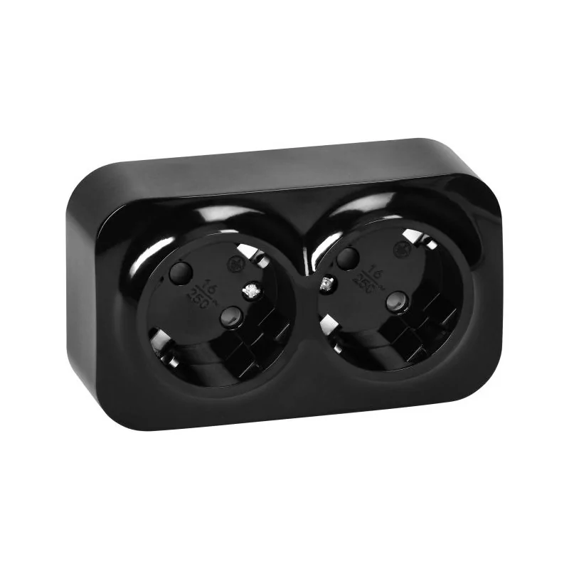 OR-OE-7206(GS)/B Czarne gniazdo podwójne SCHUKO 2x2P+Z 16A/230VAC IP20 ToDo ORNO
