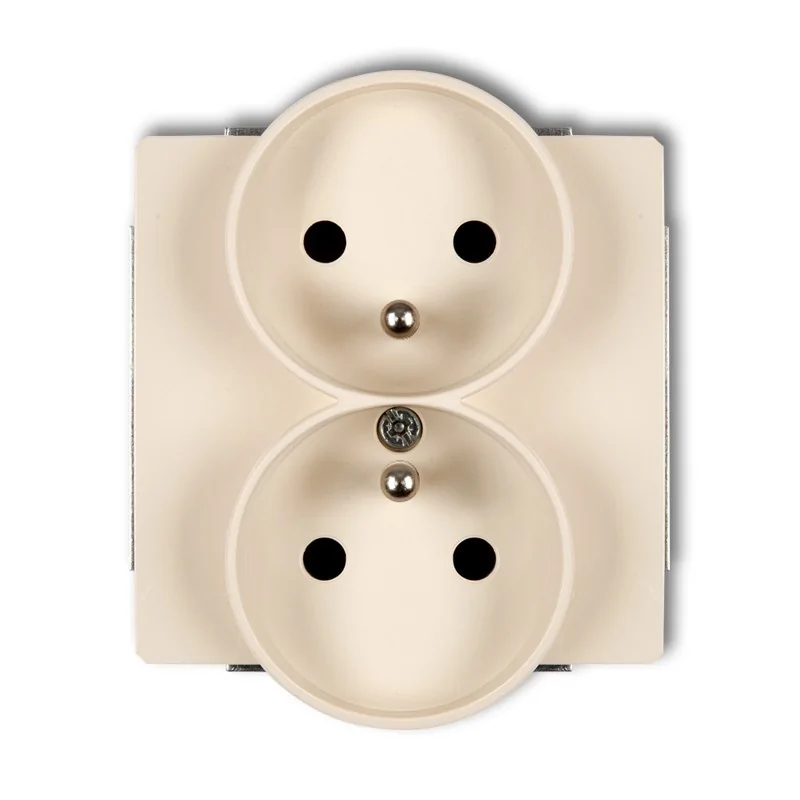 Kontakt elektryczny podwójny z uziemieniem serii DECO SOFT firmy KARLIK w kolorze beżowym przeznaczony do montażu podtynkowego. Gniazdka serii DECO posiadają wbudowane przesłony torów prądowych, zabezpieczające dzieci przed dostępem do części niebezpiecznych instalacji elektrycznej. Gniazda DECO nie potrzebują użycia dodatkowych zabezpieczeń. Mechanizmy i ramki sprzedawane są oddzielnie. Produkt przeznaczony jest do użytku wewnętrznego, a jego stopień odporności to IP20. Gniazdo pasuje tylko do ramek DECO SOFT.