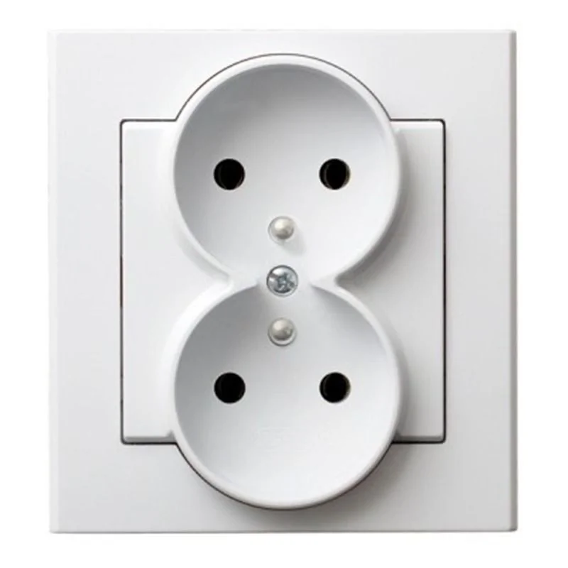 Gniazdo wtyczkowe modułowe w systemie ramkowym (ramka w zestawie), z uziemieniem podwójne podtynkowe OSPEL - SONATA GP-2RZ/00 w kolorze białym