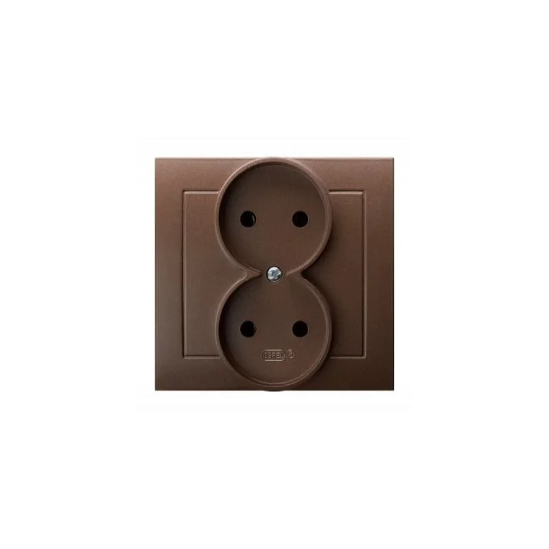Podwójne gniazdo elektryczne bez uziemienia koloru brązowego serii KIER firmy OSPEL, przeznaczone do montażu podtynkowego. Gniazdo posiada w komplecie ramkę.
