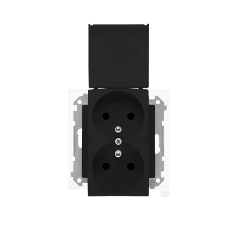 - Nazwa produktu/Rodzaj: gniazdo wtyczkowe podwójne do wersji IP44 - z uszczelką - klapka w kolorze pokrywy