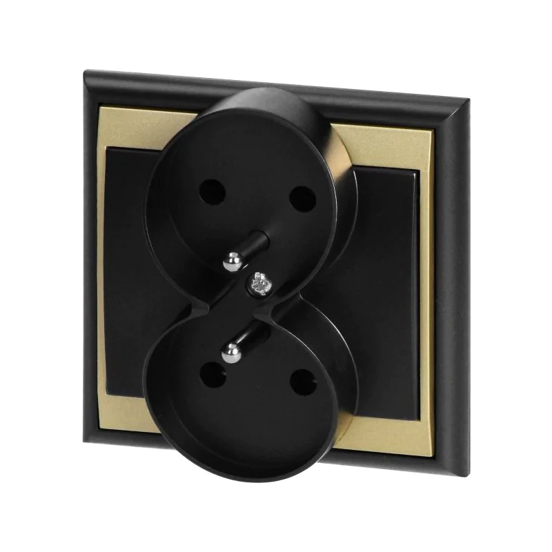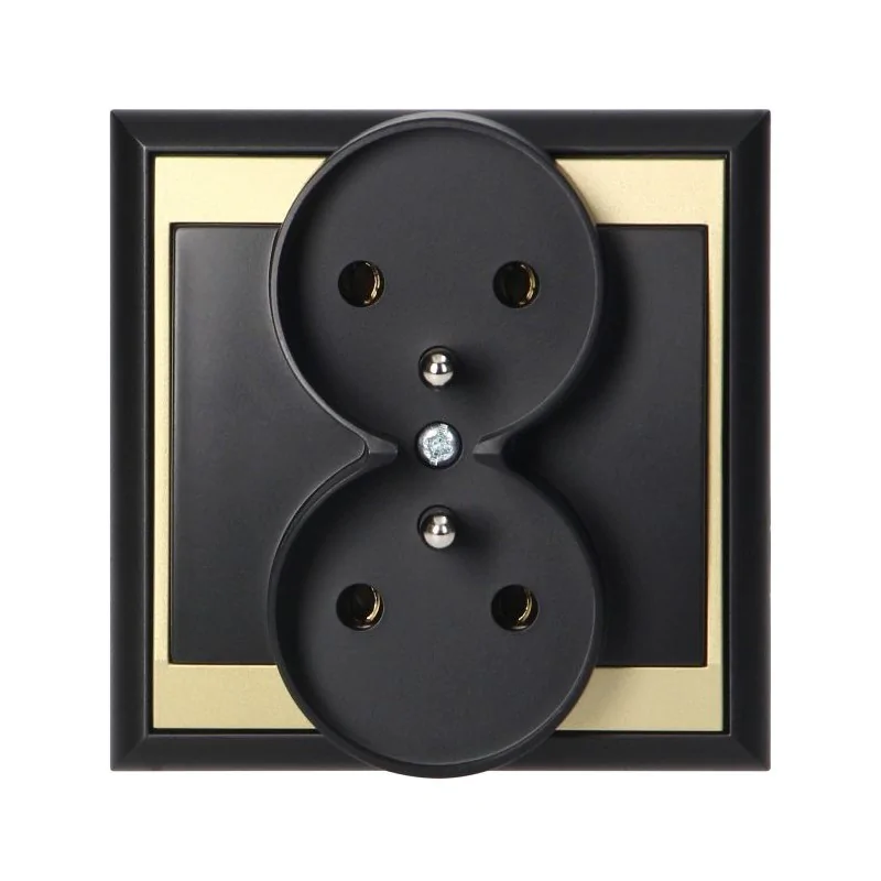 Oferta dotyczy: Gniazda podwójne ( czarno-złoty) w komplecie z ramką pojedynczą. Sprawdź inne produkty z serii LUNA i stwórz modną aranżację w swoich wnętrzach.