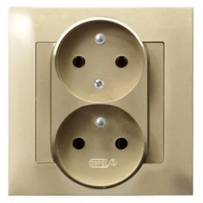 Podwójne złote gniazdo elektryczne podtynkowe z uziemieniem z ramką GP-2YZ/28 IMPRESJA OSPEL