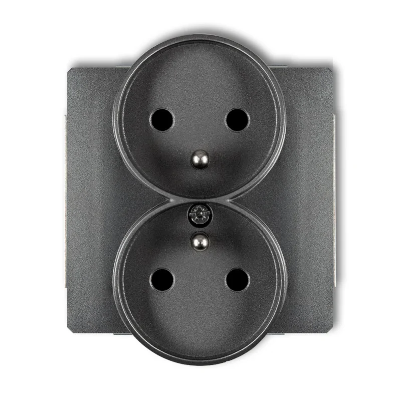 Kontakt elektryczny podwójny z uziemieniem serii DECO SOFT firmy KARLIK w kolorze grafitowym przeznaczony do montażu podtynkowego. Gniazdka serii DECO posiadają wbudowane przesłony torów prądowych, zabezpieczające dzieci przed dostępem do części niebezpiecznych instalacji elektrycznej. Gniazda DECO nie potrzebują użycia dodatkowych zabezpieczeń. Mechanizmy i ramki sprzedawane są oddzielnie. Produkt przeznaczony jest do użytku wewnętrznego, a jego stopień odporności to IP20. Gniazdo pasuje tylko do ramek DECO SOFT.