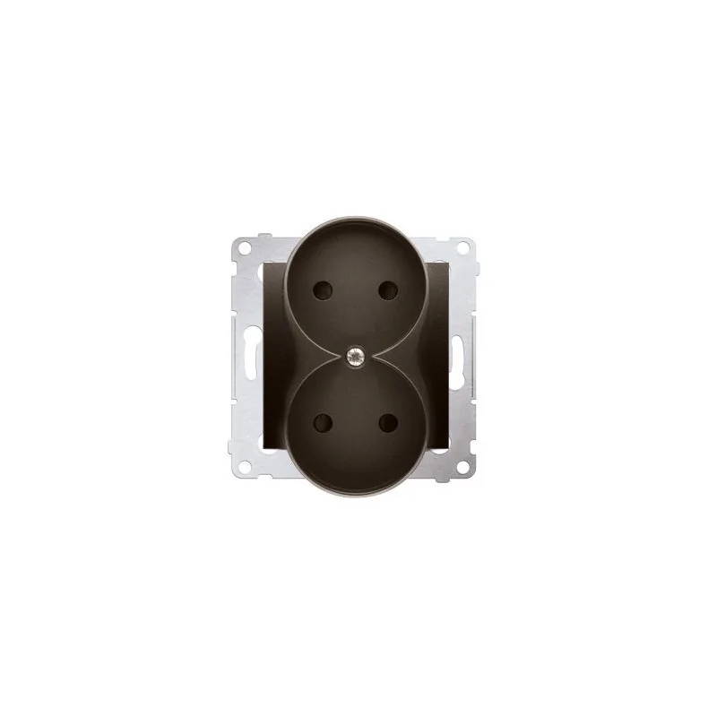 Gniazdo wtyczkowe bez uziemienia z przesłonami podwójne do ramek NATURE (moduł) 16A, 250V, zaciski śrubowe; brąz mat