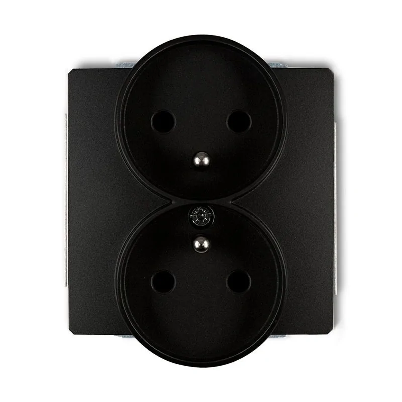 Gniazdo podwójne z uziemieniem koloru czarnego serii DECO firmy KARLIK, przeznaczone do montażu podtynkowego. Gniazdo wymaga dokupienia ramki serii DECO firmy KARLIK. Uwaga! Produkt nie jest kompatybilny z ramkami DECO Soft.