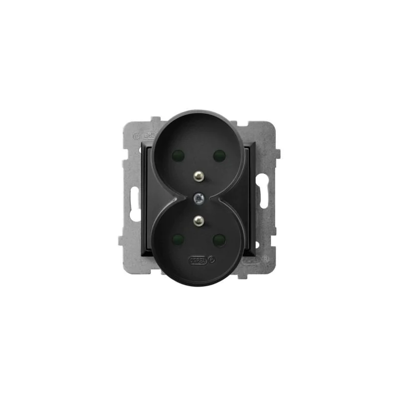 Gniazdko podwójne w kolorze czarnym metalicznym GP-2URZP/m/33 serii ARIA firmy OSPEL przeznaczone jest do montażu podtynkowego oraz wymaga dokupienia ramki tej samej serii oraz firmy. Czarne gniazdko wyposażone jest w uziemienie oraz przesłony torów prądowych. Przesłony torów prądowych chronią dzieci przed porażeniem pradem, w przypadku próby włożenia przedmiotu do gniazdka. Podwójne gniazdko podtynkowe serii ARIA posiada stopień ochronności IP20.