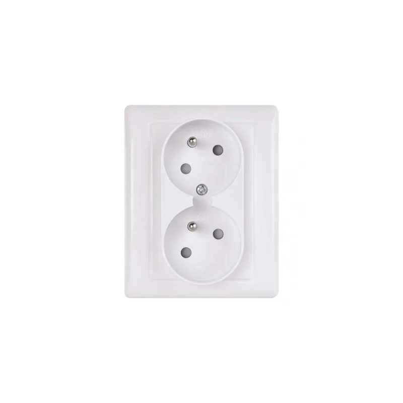 Gniazdo podwójne FRENCH A6001.3 firmy EMOS przystosowane jest do montażu w puszce. Ze względu na stopień ochronności IP20 produkt może być stosowany tylko wewnątrz pomieszczeń. Gniazdko posiada obudowę w kolorze białym oraz wyposażone zostało w przesłony torów prądowych. Gniazdo do puszki fi 80