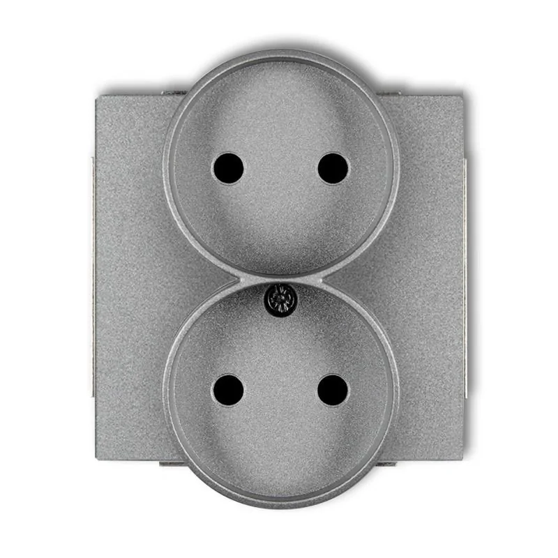 Gniazdo podwójne bez uziemieniem w kolorze srebrnym serii DECO firmy KARLIK, przeznaczone do montażu podtynkowego. Gniazdo wymaga dokupienia ramki serii DECO firmy KARLIK. Produkt nie jest kompatybilny z ramkami DECO Soft.