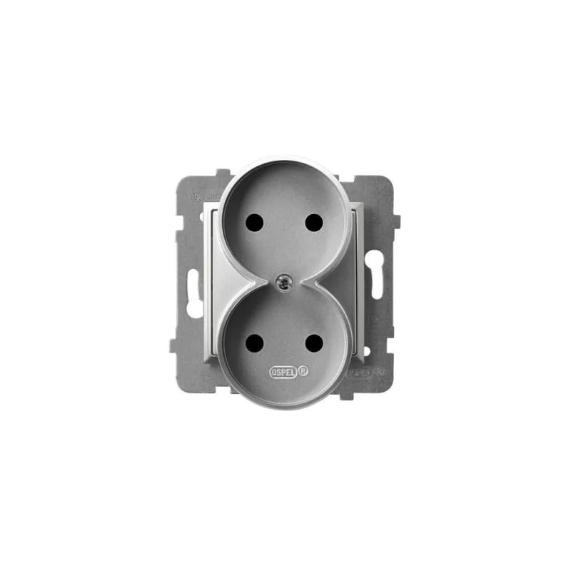 Podwójny kontakt elektryczny bez uziemienia GP-2UR/m/18 serii ARIA firmy OSPEL przeznaczone jest do montażu podtynkowego. Elektryczne gniazdko pojedyncze wymaga dokupienia ramki tej samej serii i firmy. Podwójne gniazdo podtynkowe serii ARIA jest w kolorze srebrnym i posiada stopień odporności IP20. Podwójny kontakt elektryczny doskonale będzie prezentował się w każdym miejscu. Oferujemy również inne gniazdka elektryczne podtynkowe w różnych kolorach.