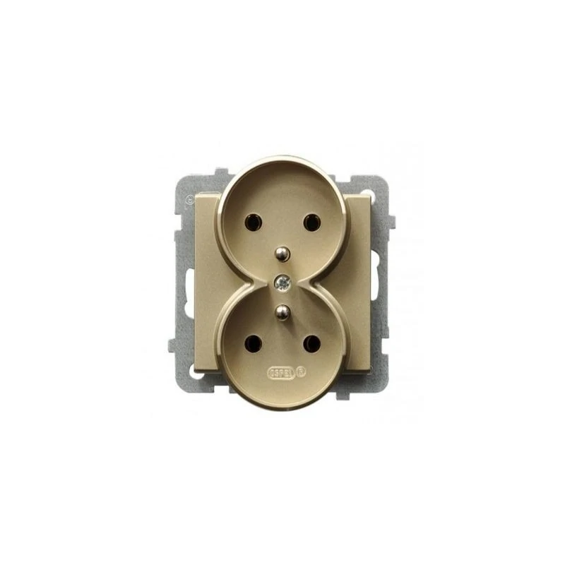 Gniazdo wtyczkowe modułowe w systemie ramkowym (bez ramki), z uziemieniem podwójne podtynkowe OSPEL - SONATA GP-2RRZ/m/39 w kolorze złotym