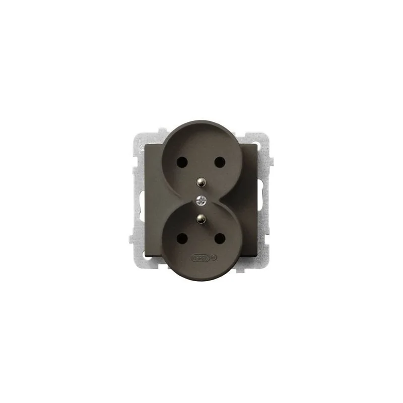 Gniazdo wtyczkowe modułowe w systemie ramkowym (bez ramki), z uziemieniem podwójne podtynkowe OSPEL - SONATA GP-2RRZ/m/40 w kolorze czekoladowy metalik