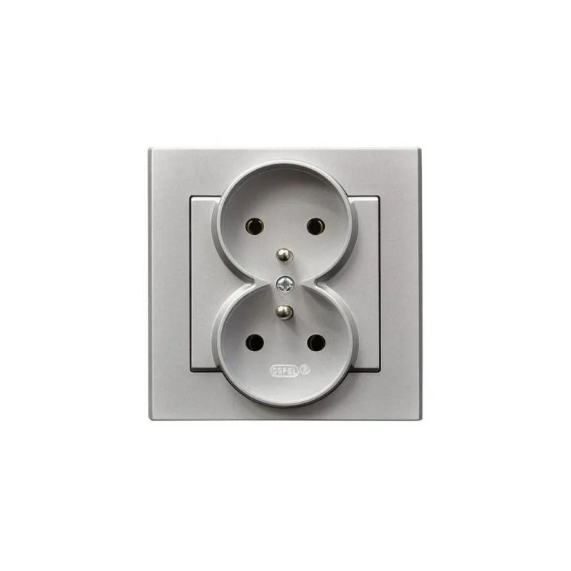 Gniazdo wtyczkowe modułowe w systemie ramkowym (ramka w zestawie), z uziemieniem podwójne podtynkowe OSPEL - SONATA GP-2RZ/38 w kolorze srebrne