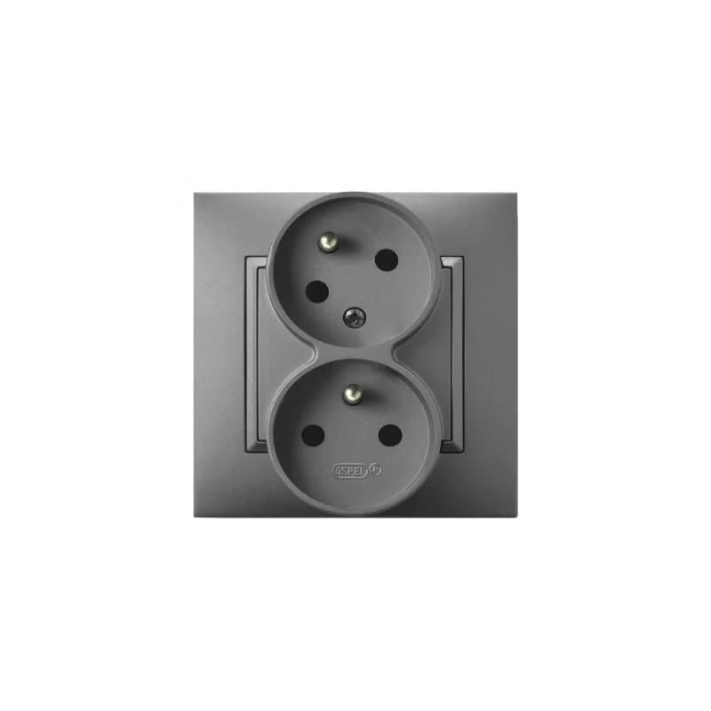 Gniazdko podwójne GP-2UC/70 serii ARIA firmy OSPEL przeznaczone jest do montażu podtynkowego oraz jest w szarym matowym kolorze. Podwójny kontakt elektryczny sprzedawany jest z ramką w zestawie i posiada stopień odporności IP20. Gniazdo podtynkowe firmy OSPEL wyposażone jest w uziemienie oraz w funkcję niezamienności faz. Osprzęt elektroinstalacyjny firmy OSPEL dostępny jest również w innych wersjach kolorystycznych.
