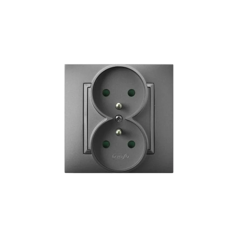 Podwójne gniazdko podtynkowe GP-2UZP/70 serii ARIA firmy OSPEL jest w kolorze szarym matowym. Elektryczne gniazdo podtynkowe sprzedawane jest z ramką w zestawie oraz przeznaczone jest do montażu podtynkowego. Podwójne gniazdko elektryczne wyposażone zostało w uziemienie, a także przesłony torów prądowych, które ochronią Twoje dziecko przed porażeniem prądem. Gniazdo elektryczne posiada stopień ochronności IP20.