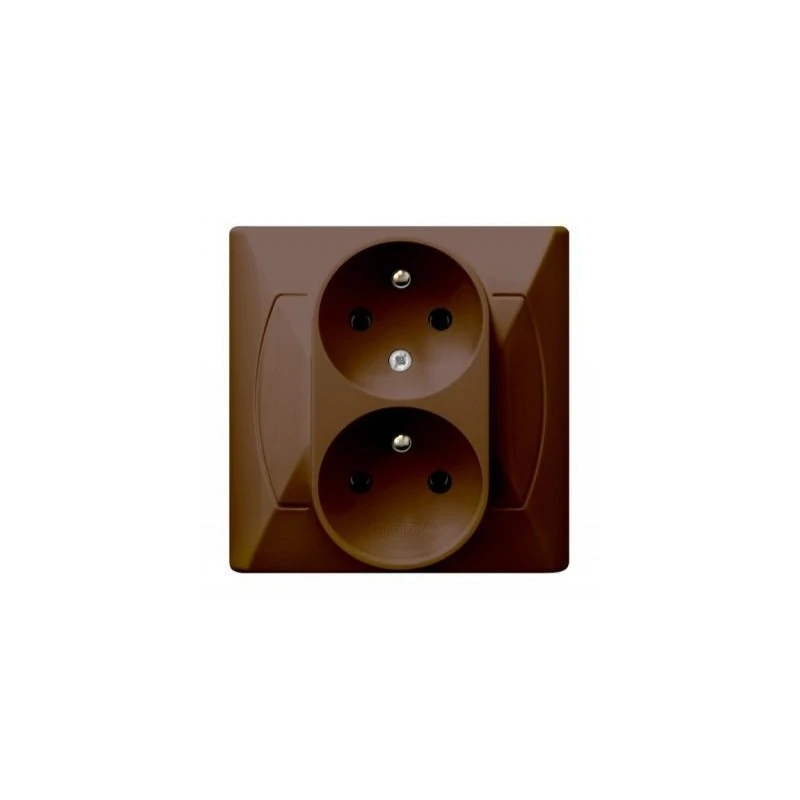 Gniazdo podwójne z uziemieniem i z funkcją niezamienności faz serii AKCENT firmy OSPEL w kolorze brązowym jest przeznaczone do montażu podtynkowego. Gniazdo posiada stopień odporności IP20 i prąd znamionowy 16A. Gniazdo elektryczne ma nowoczesny i bardzo elegancki wygląd. Gniazdo podwójne tzw. czeskie posiada uziemienie oraz funkcję niezamienności faz. Gniazdo posiada 2- letnią gwarancję oraz wymiary takie jak: szerokość- 82 mm, wysokość- 87 mm, głębokość- 45 mm, głębokość wbudowania- 23 mm.