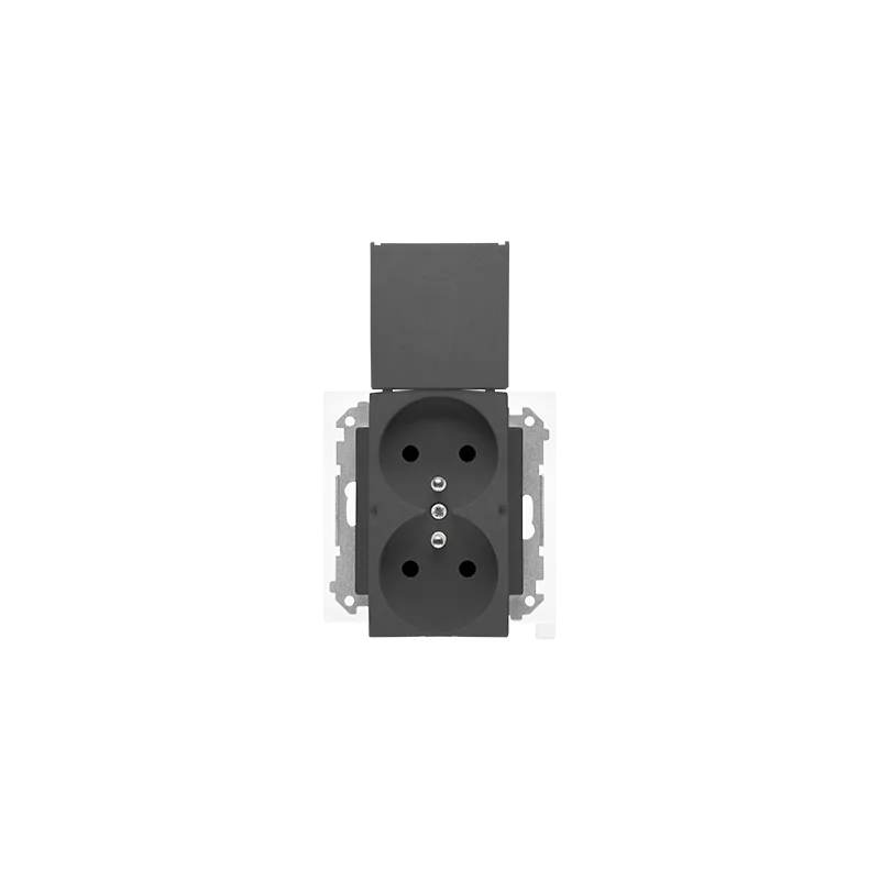 Gniazdo hermetyczne podwójne, bryzgoszczelne, z klapką, IP44, z uszczelką, grafitowy mat