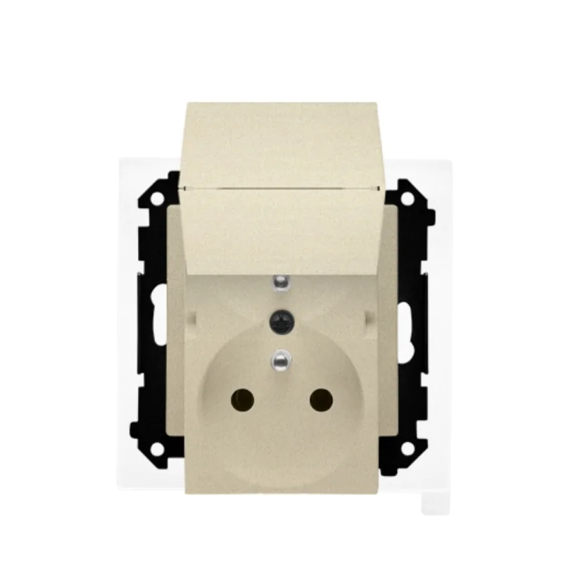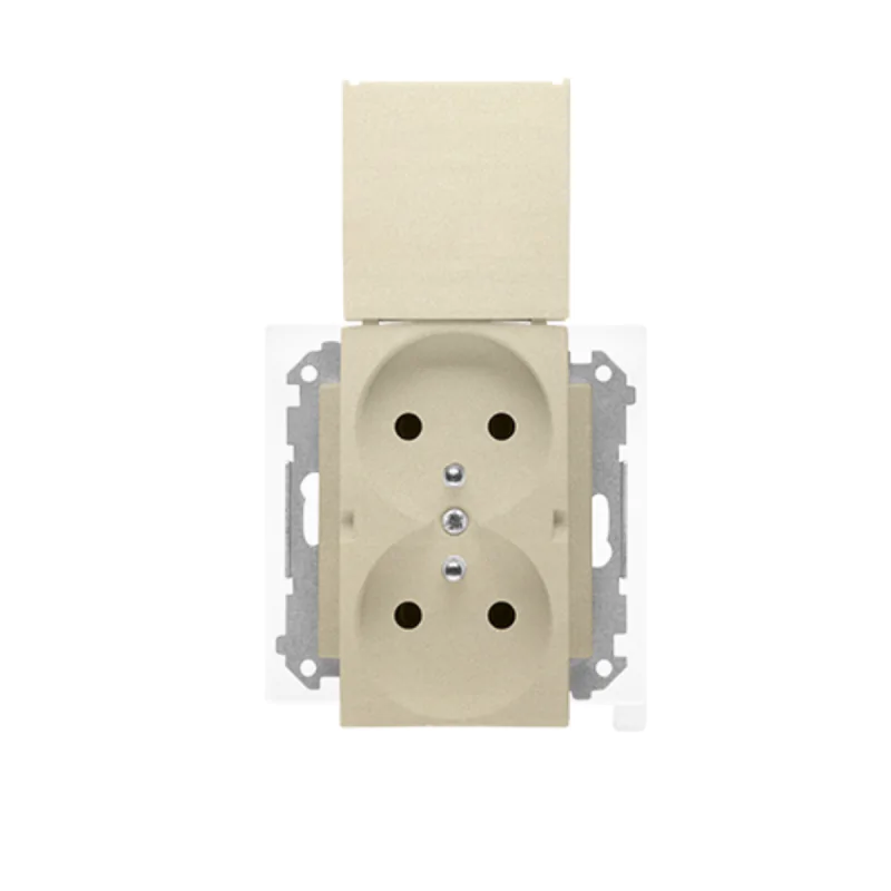 Gniazdo hermetyczne podwójne, bryzgoszczelne, z klapką, IP44, z uszczelką, szampański mat