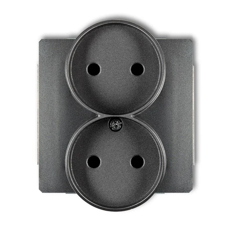 Podwójne gniazdo bez uziemienia w kolorze grafitowym serii DECO firmy KARLIK, przeznaczone do montażu podtynkowego. Gniazdo wymaga dokupienia ramki serii DECO firmy KARLIK. Uwaga! Produkt nie jest kompatybilny z ramkami DECO Soft.