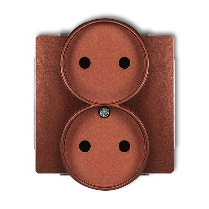 Podwójne gniazdo bez uziemienia w kolorze brązowym serii DECO firmy KARLIK, przeznaczone do montażu podtynkowego. Gniazdo wymaga dokupienia ramki serii DECO firmy KARLIK. Uwaga! Produkt nie jest kompatybilny z ramkami DECO Soft.