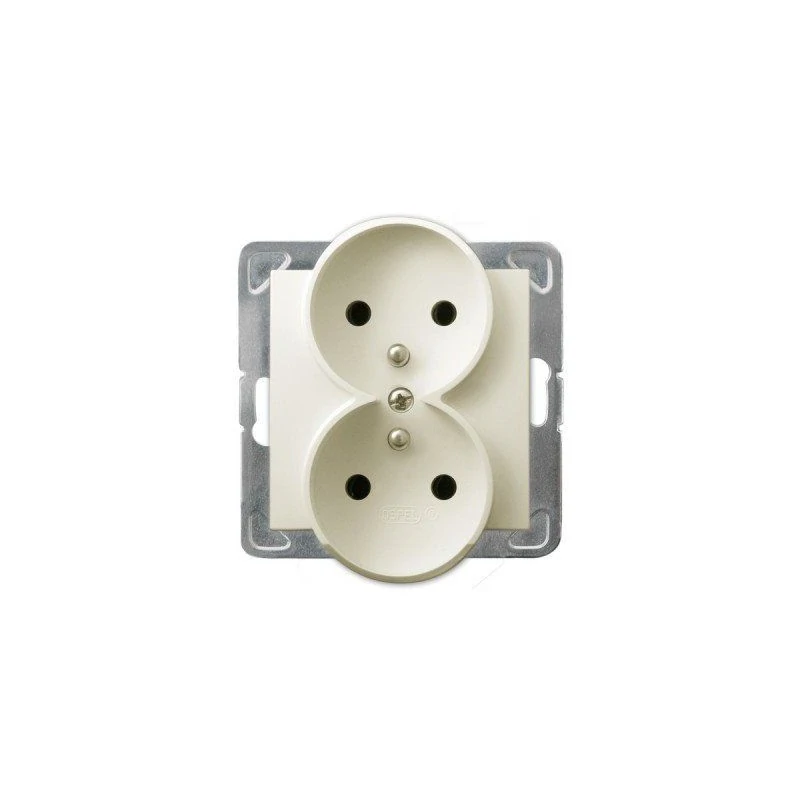 Podwójne gniazdo elektryczne podtynkowe w kolorze ECRU serii IMPRESJA firmy OSPEL, przeznaczone do montażu podtynkowego. Gniazdo wymaga ramki serii IMPRESJA firmy OSPEL.