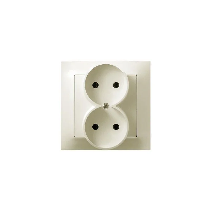 Podwójne gniazdo elektryczne bez uziemienia serii IMPRESJA firmy OSPEL, w kolorze ECRU, przeznaczone do montażu podtynkowego.