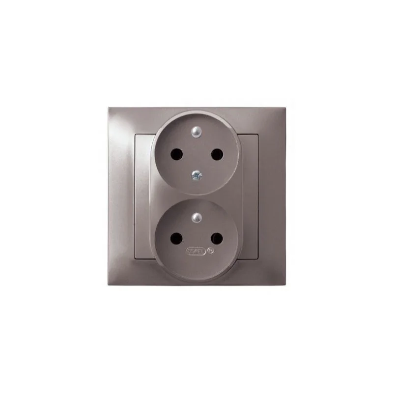 Podwójne tytanowe gniazdo elektryczne z uziemieniem, z funkcją niezamienności faz serii IMPRESJA firmy OSPEL, sposób montażu: podtynkowy.