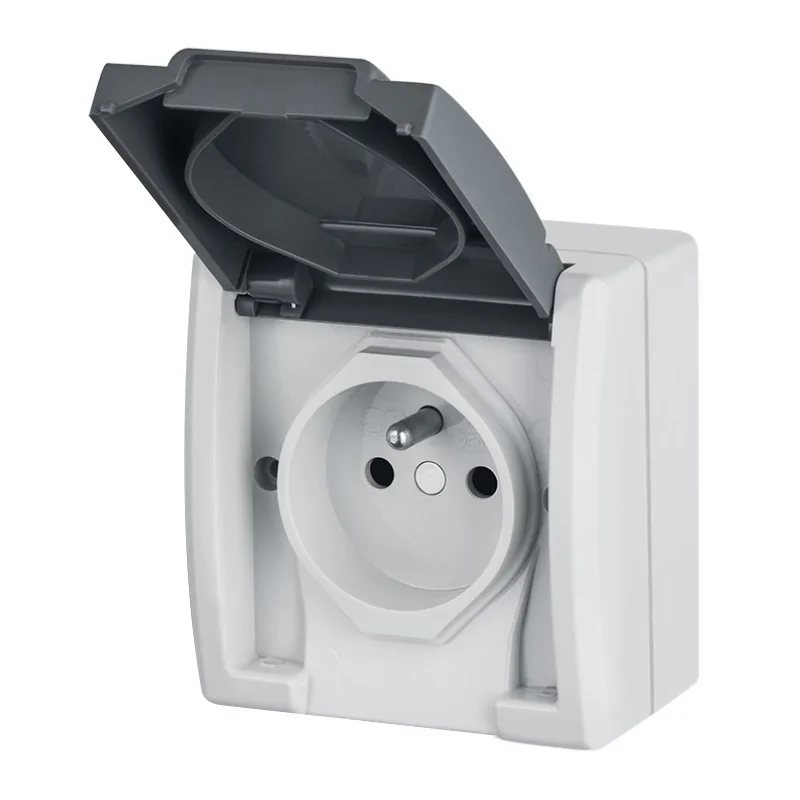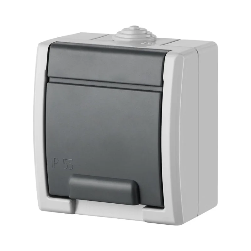 1241-10 AQUANT Gniazdo pojedyncze natynkowe z klapką IP55 szare ELEKTRO-PLAST