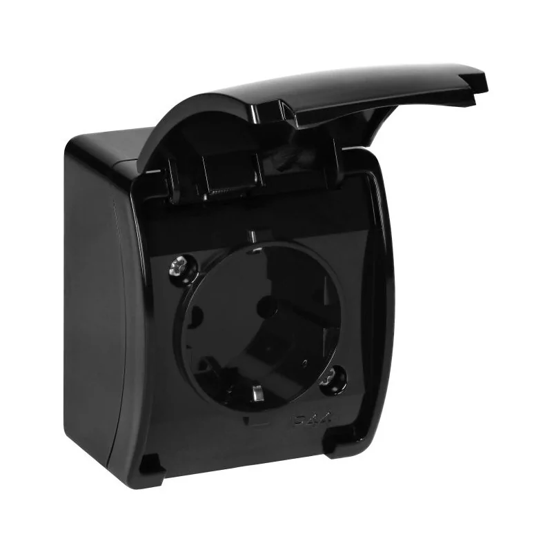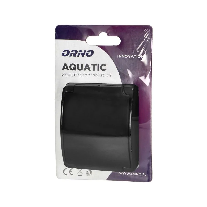 Zewnętrzne Gniazdo pojedyncze AQUATIC z uziemieniem typu F wersja SCHUKO, przeznaczone do montażu natynkowego o czarnym połyskującym kolorze. Produkt marki ORNO, posiada praktyczną klapkę, która chroni wnętrze gniazda przez bezpośrednim dostępem pyłów i wody, dzięki czemu gniazdo może być również montowane w pomieszczeniach o podwyższonej wilgotności, takich jak kuchnia czy łazienka. Produkt wykonany jest z wysokogatunkowego tworzywa sztucznego i występuje w 4 kolorach: białym, czarnym, białym-dymionym lub szaro-grafitowym. Posiada klasę szczelności IP44, więc może być stosowany zarówno wewnątrz, jak i na zewnątrz.