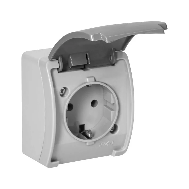 10GHE-1s Popielate gniazdo schuko natynkowe z klapką IP54 JUNIOR KARLIK
