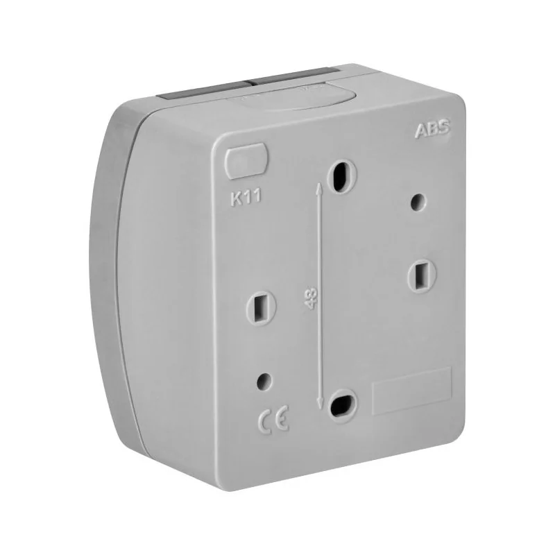 Szary włącznik podwójny z gniazdem hermetycznym w pionie 10WGHP-2 JUNIOR KARLIK