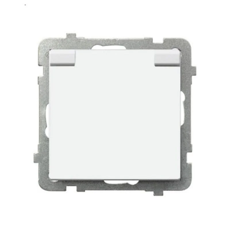 Gniazdo bryzgoszczelne z klapką białą, z uziemieniem, stopień ochrony IP44, białe