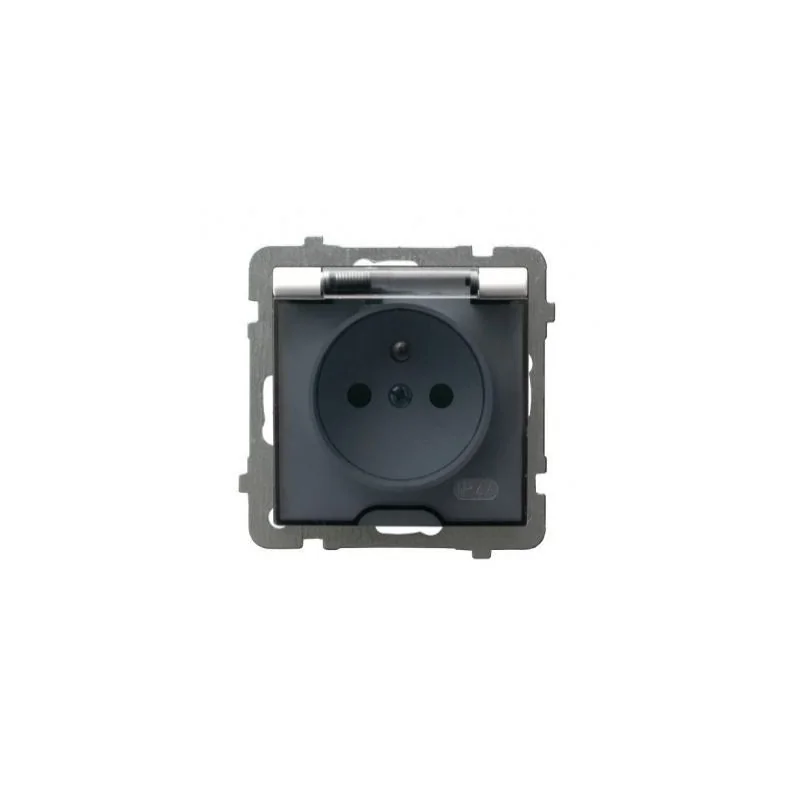 Gniazdo bryzgoszczelne firmy OSPEL posiadające zabezpieczenie IP-44 czyniąc gniazdko odpornym na niekorzystne warunki atmosferyczne, kolor: biały, montowany pazurkowo lub gwintowo.