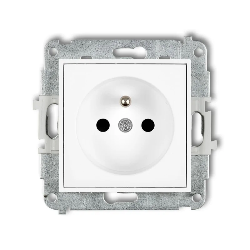 Gniazdo elektryczne pojedyncze MGP-1zp serii Deco Mini marki Karlik w kolorze białym przeznaczone jest do montażu podtynkowego. Gniazda pojedyncze MINI posiadają wbudowane przesłony torów prądowych, zabezpieczające dzieci przed dostępem do części niebezpiecznych instalacji elektrycznej. Mechanizmy i ramki Deco Mini sprzedawane są osobno. Do gniazda pojedynczego należy dokupić ramkę instalacyjną, która dostępna jest w różnych kolorach i krotnościach- od pojedynczej, po pięciokrotną. Ramki serii MINI to najmniejsze (zaledwie 80,0mm x 80,0mm x 6,3mm), dostępne na polskim rynku produkty tego typu. Gniazda i włączniki Mini sprzedawane są z ramką pośrednią w kolorze mechanizmu.