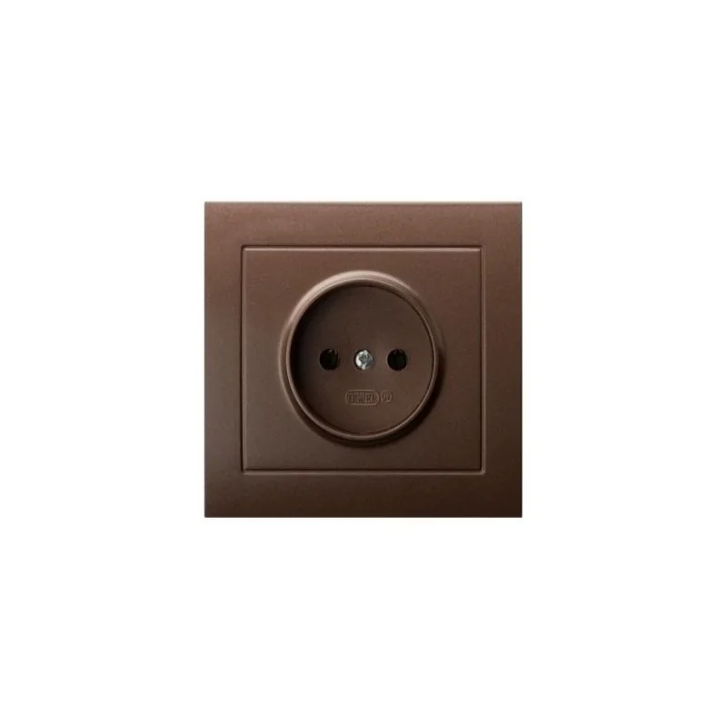 Gniazdo elektryczne pojedyncze bez uziemienia koloru brązowego serii KIER firmy OSPEL, przeznaczone do montażu podtynkowego. Gniazdo posiada w komplecie ramkę.