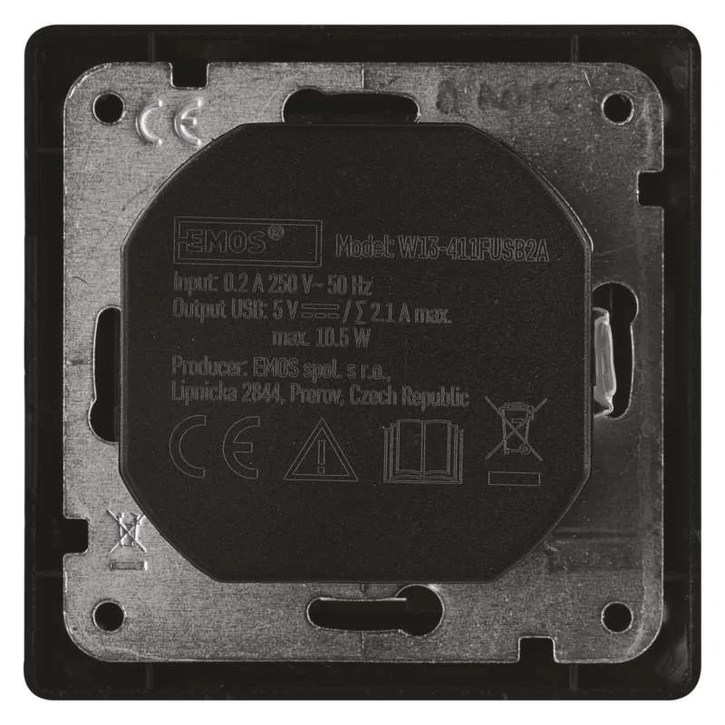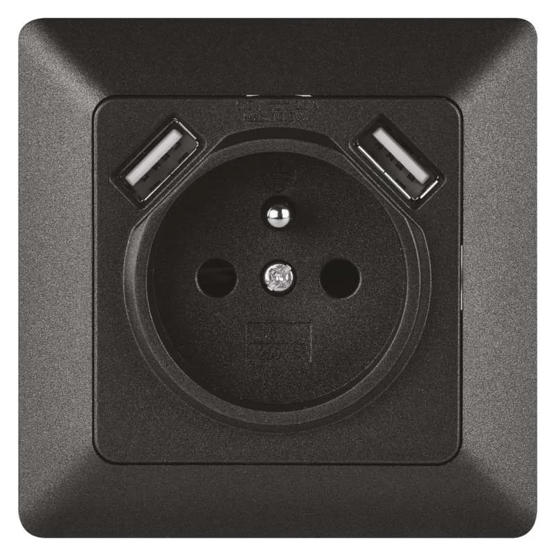 Pojedyncze gniazdo FRENCH z uziemieniem marki EMOS. Gniazdo o symbolu A6000.2 wykonano z tworzywa sztucznego w kolorze antracyt. Gniazdo posiada styk ochronny oraz 2 wejścia USB 2,1A max. Gniazdo przeznaczone jest do montażu podtynkowego w puszce (dodatkowa głębokość min. 40 mm). Stopień ochrony produktu to IP20. Produkt objęty jest gwarancją producenta. Produkt kompletny z ramką. Gniazdo z USB umozliwia podpięcie produktów zasilanych tego typu wejściem.