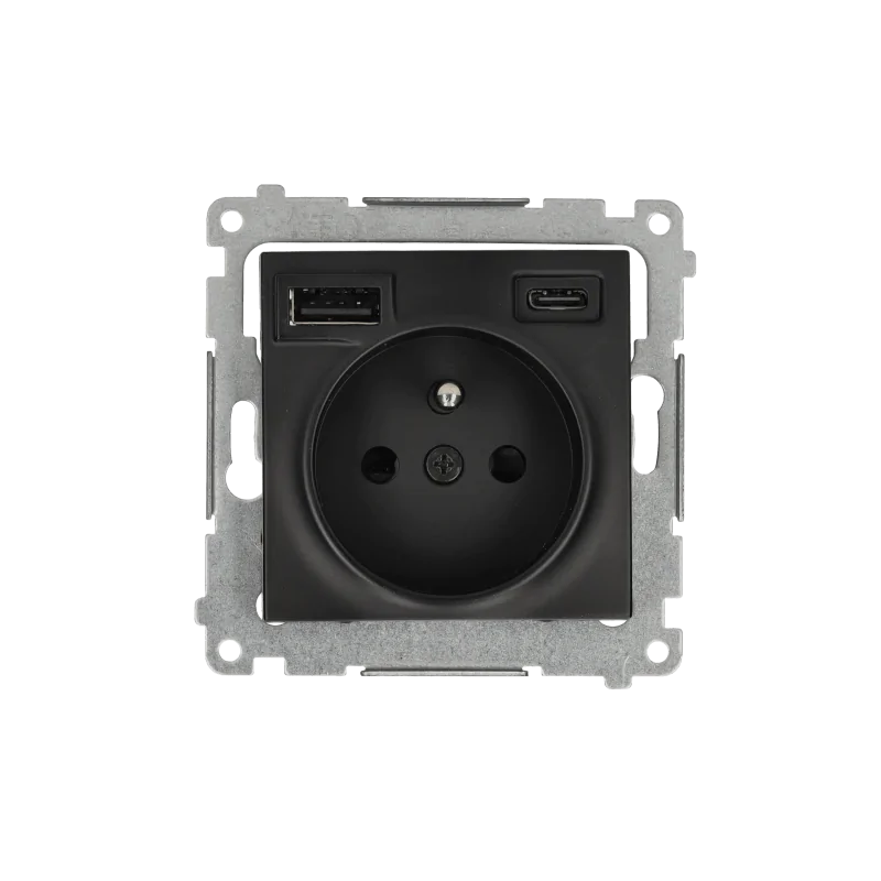 Gniazdo z ładowarką USB, C+A, 2,1A, 16A, czarny