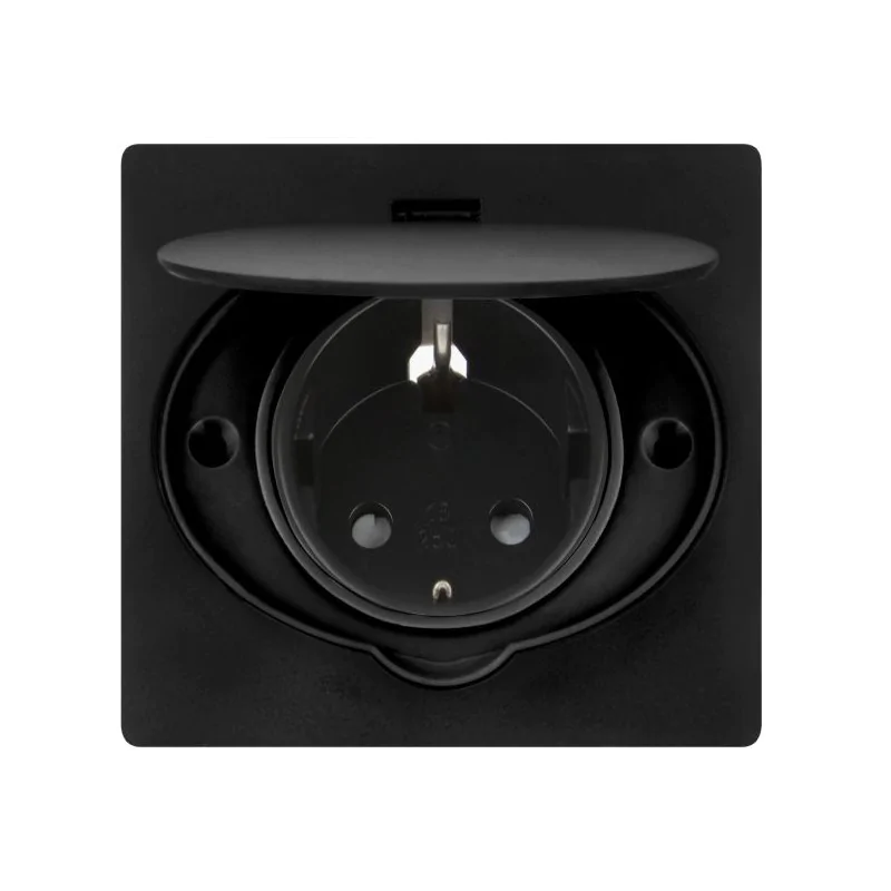 Stopień ochrony IP44 zapewnia odporność na pył i niewielkie bryzgi wody, a także użytkowanie produktu przez lata. Gniazdo zostało wykonane z trwałego stopu cynku i wysokiej jakości tworzywa sztucznego, by zapewnić niezawodność w działaniu. Czarne wykończenie daje poczucie estetyki i minimalizmu. Dodatkowym zabezpieczeniem jest wbudowana klapka ochronna, zabezpieczająca gniazdo przed kurzem wilgocią. Klapka otwiera się pod kątem 90°, pozwalając tym samym na wygodny dostęp do gniazda.