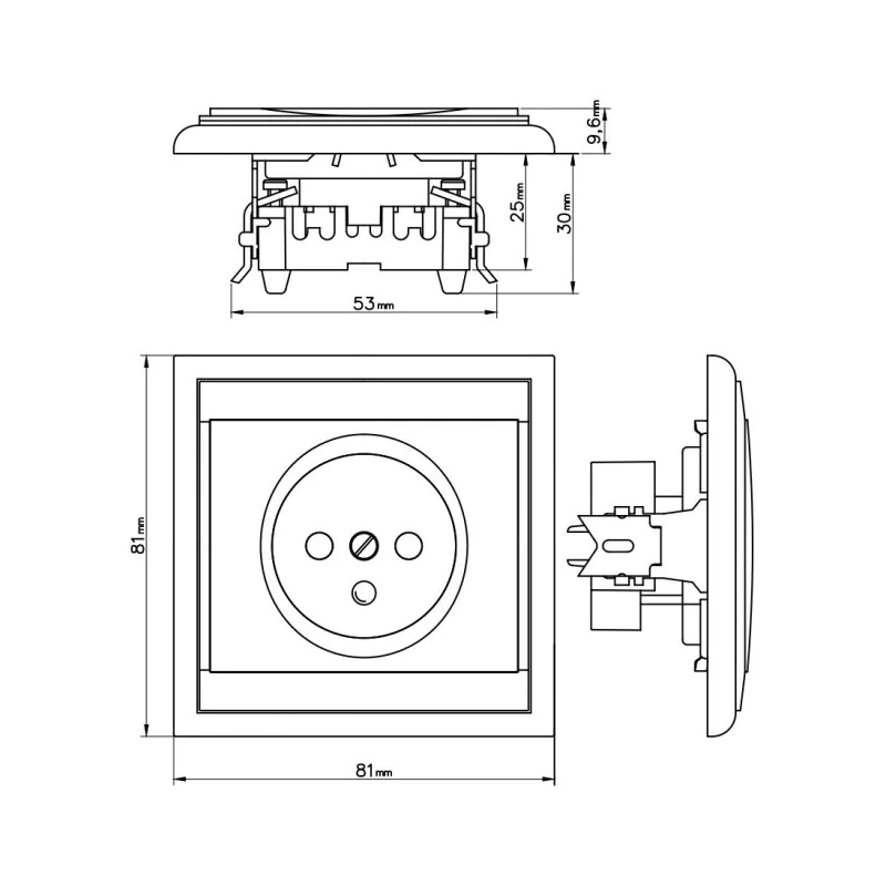 - Gniazdo pojedyncze z uziemieniem