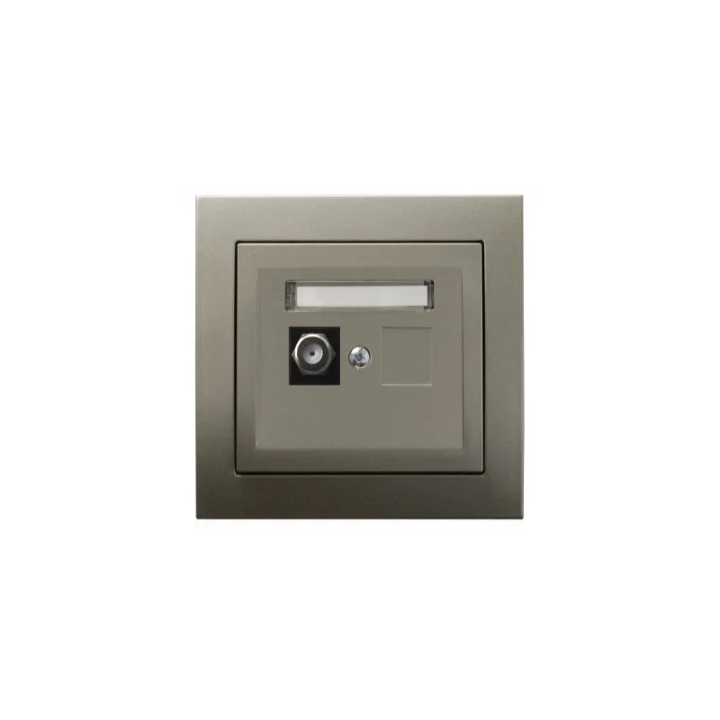 Gniazdo antenowe typu F w kolorze satynowym serii KIER firmy OSPEL, przeznaczone do montażu podtynkowego. Gniazdo posiada ramkę w komplecie.
