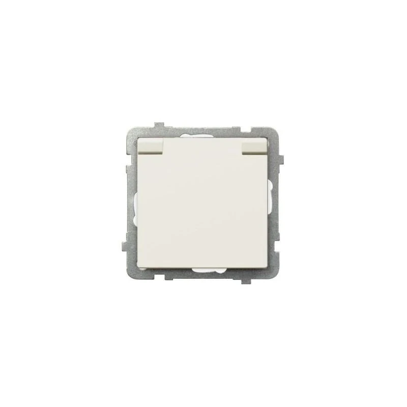 Gniazdo bryzgoszczelne z klapką, z uziemieniem, stopień ochrony IP44, ECRU