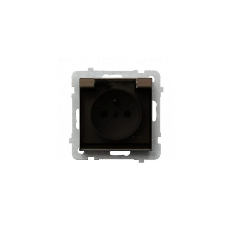 Gniazdo bryzgoszczelne z klapką przeźroczystą, z uziemieniem, stopień ochrony IP44, czekoladowy metalik