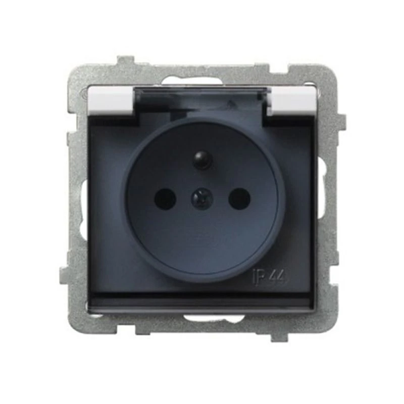 Gniazdo bryzgoszczelne z klapką przeźroczystą, z uziemieniem, stopień ochrony IP44, ECRU