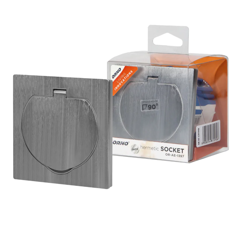 Gniazdo podtynkowe na zewnątrz z klapką hermetyczne z puszką wiatroszczelną IP55 kwadratowe OR-AE-1397MB ORNO